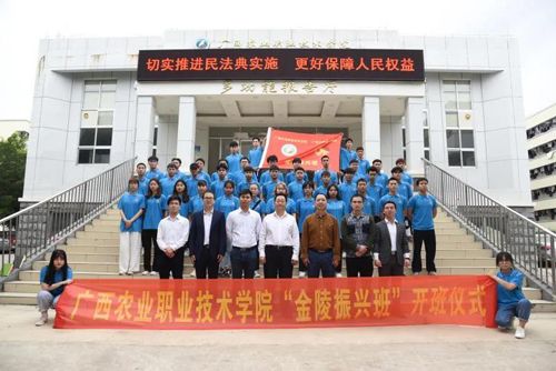2021年3月19日下午,廣西農(nóng)業(yè)職業(yè)技術(shù)學院多功能報告廳張燈結(jié)彩,廣西農(nóng)業(yè)龍頭企業(yè)行業(yè)協(xié)會副會長單位金陵集團與廣西農(nóng)業(yè)職業(yè)技術(shù)學院合作的“金陵振興班”在這里舉行了簡約卻隆重的開班儀式。農(nóng)職院副院長羅英極、動科系黨總支書記韋耀福、動科系主任李軍成、集團種禽事業(yè)部總經(jīng)理黃超、人力資源部經(jīng)理郭明等校企代表及農(nóng)職院畜牧獸醫(yī)系“金陵振興班”全體同學出席了儀式。農(nóng)職院副院長羅英極、集團種禽事業(yè)部總經(jīng)理黃超分別代表校企簽署了“金陵振興班”協(xié)議書并向振興班校方班主任覃振斌、企方班主任蒙愈(集團人力資源部主管)頒發(fā)了證書后,集團種禽事業(yè)部總經(jīng)理黃超在“金陵振興班”教室向該班40名同學介紹了金陵集團情況并與全體同學進行了榮洽的交流。
